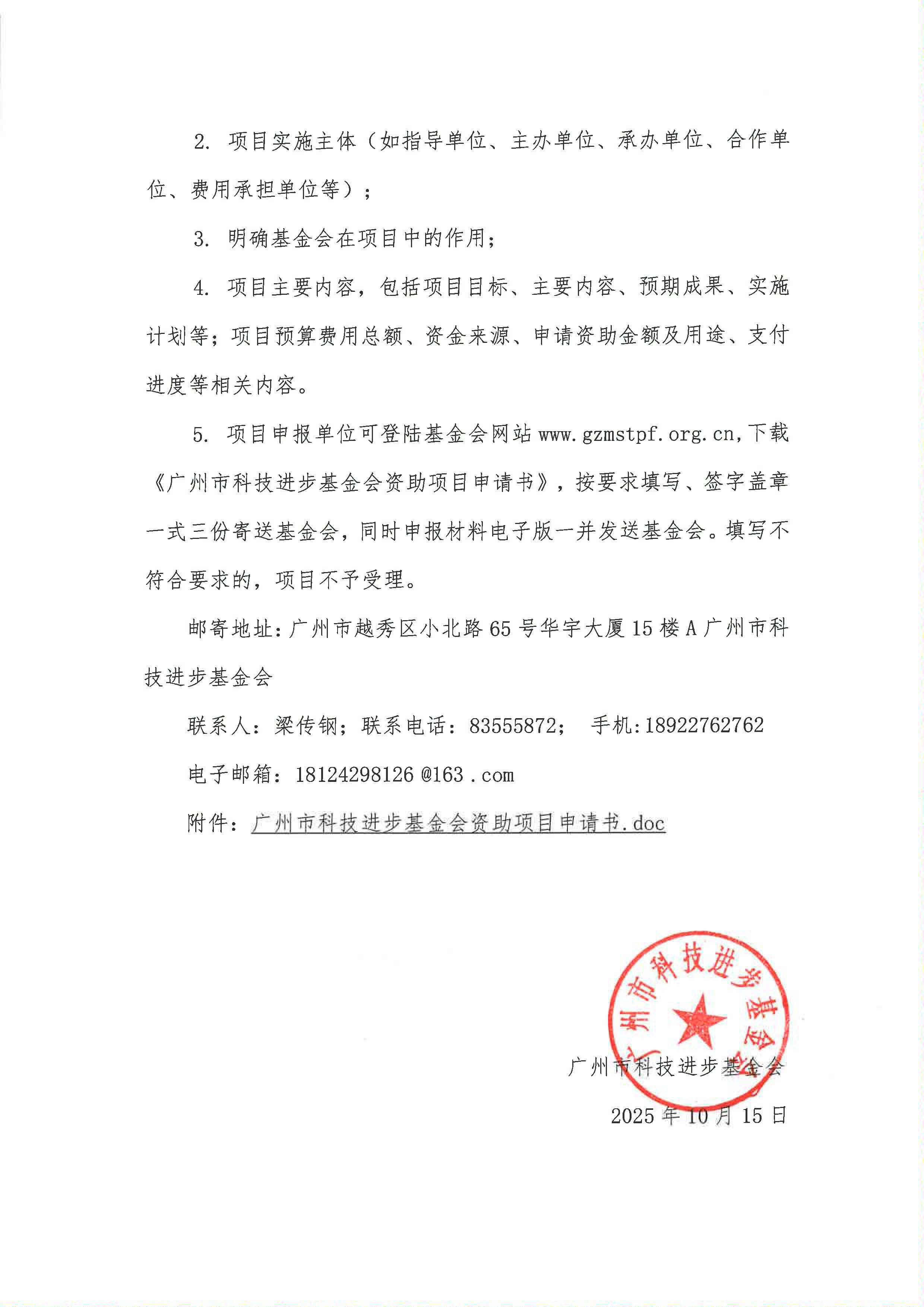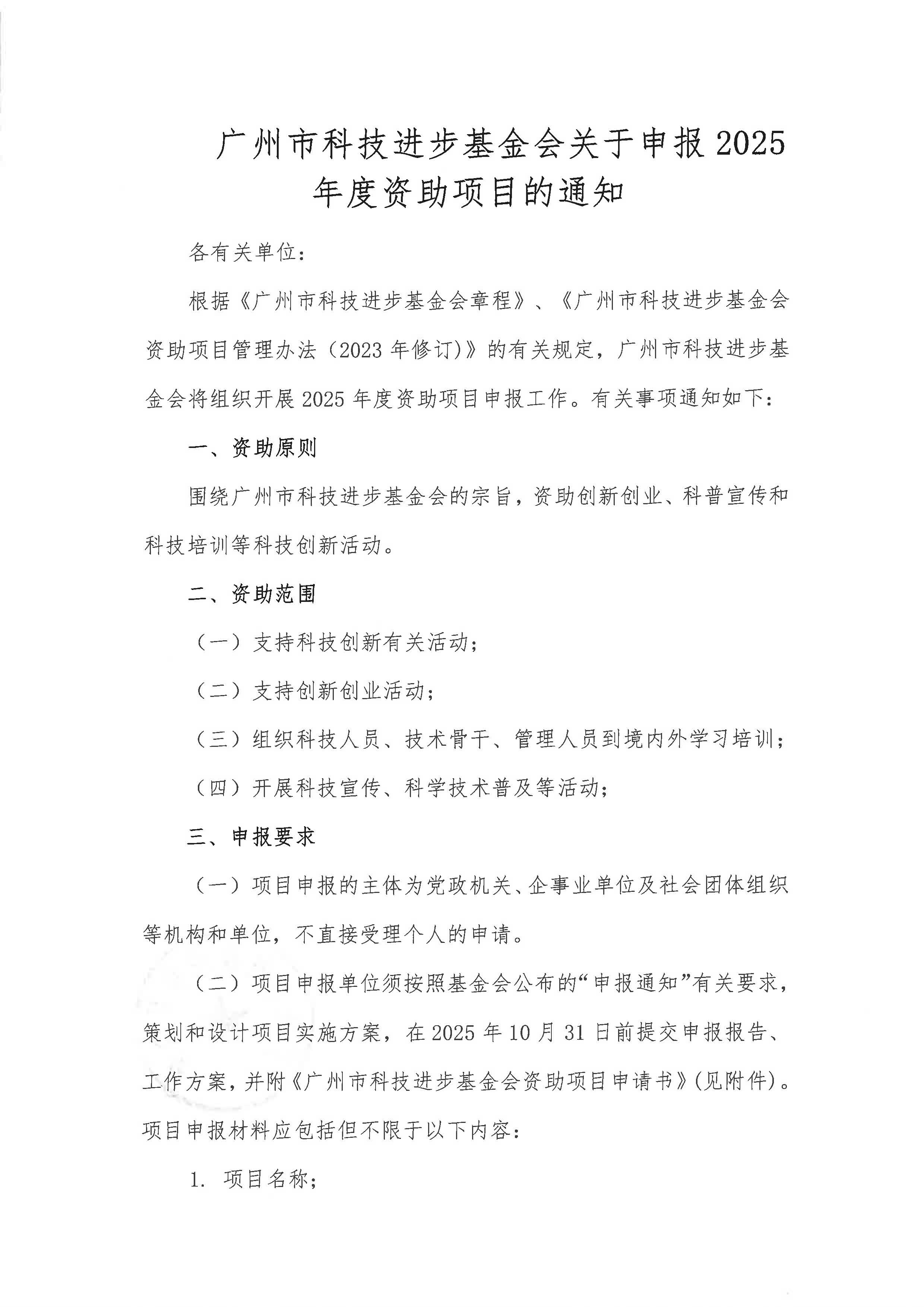 3. 广州市科技进步基金会关于申报2025年度资助项目的通知