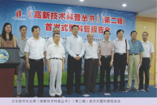 由我会和市科信局联合资助出版的《高新技术科普丛书》(第二辑)于2013年10月10日下午在广东科学馆隆重召开丛书的首发式,张景中院士、广州市副市长王东、广东省科协党组书记何真等领导出席。首发式由张景中院士致辞,王东副市长、何真书记等领导向机关、学生及社区代表赠送了从书。该丛书共8本,分别从实验动物技术与人类健康、智慧城市建设、智能交通技术等方面进行了介